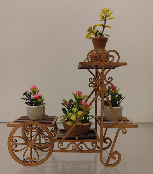 Small Wooden Flower Trolley Decoration Piece – Mini Floral Cart for Tabletop Décor